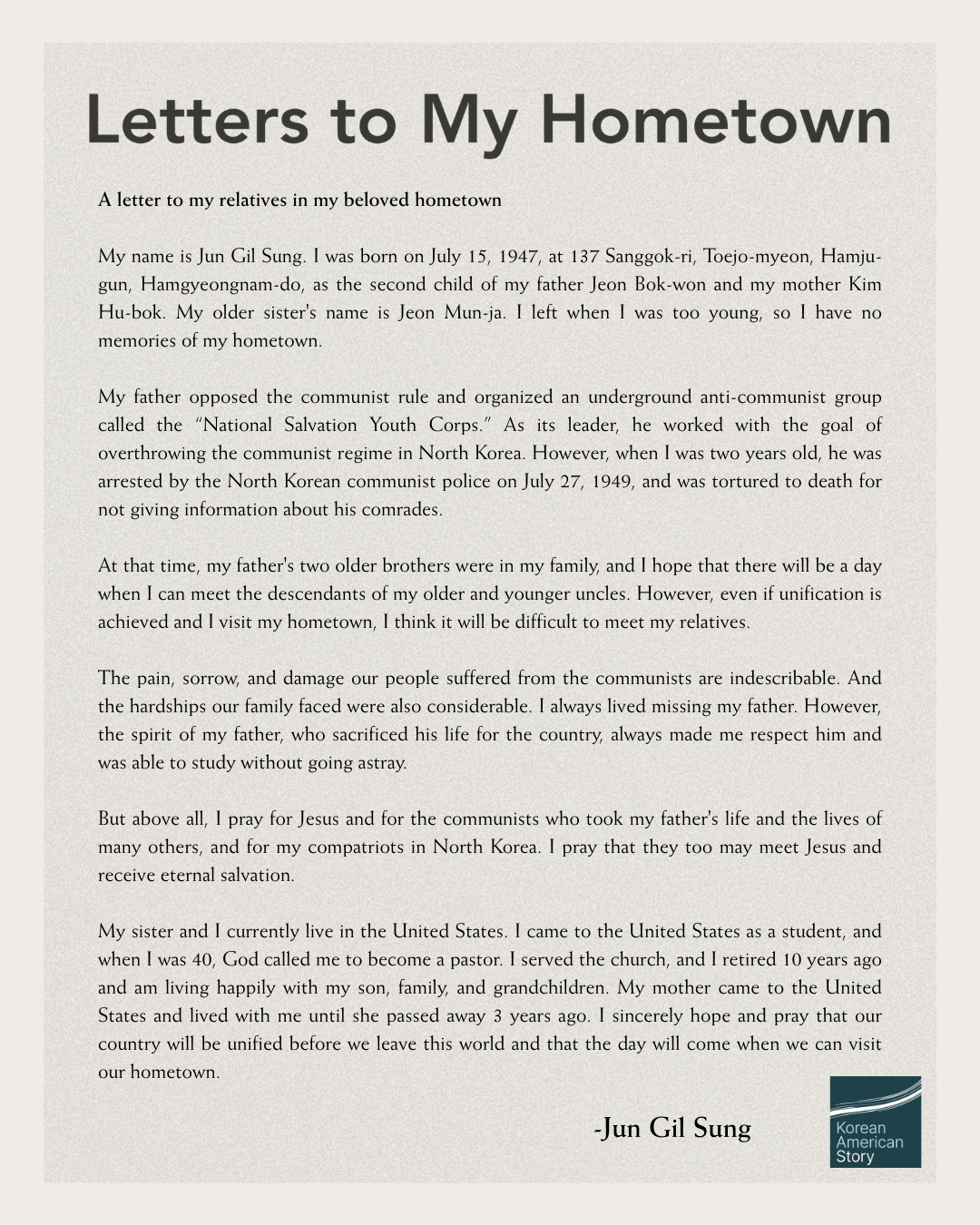 Letters to My Hometown: Jun Family